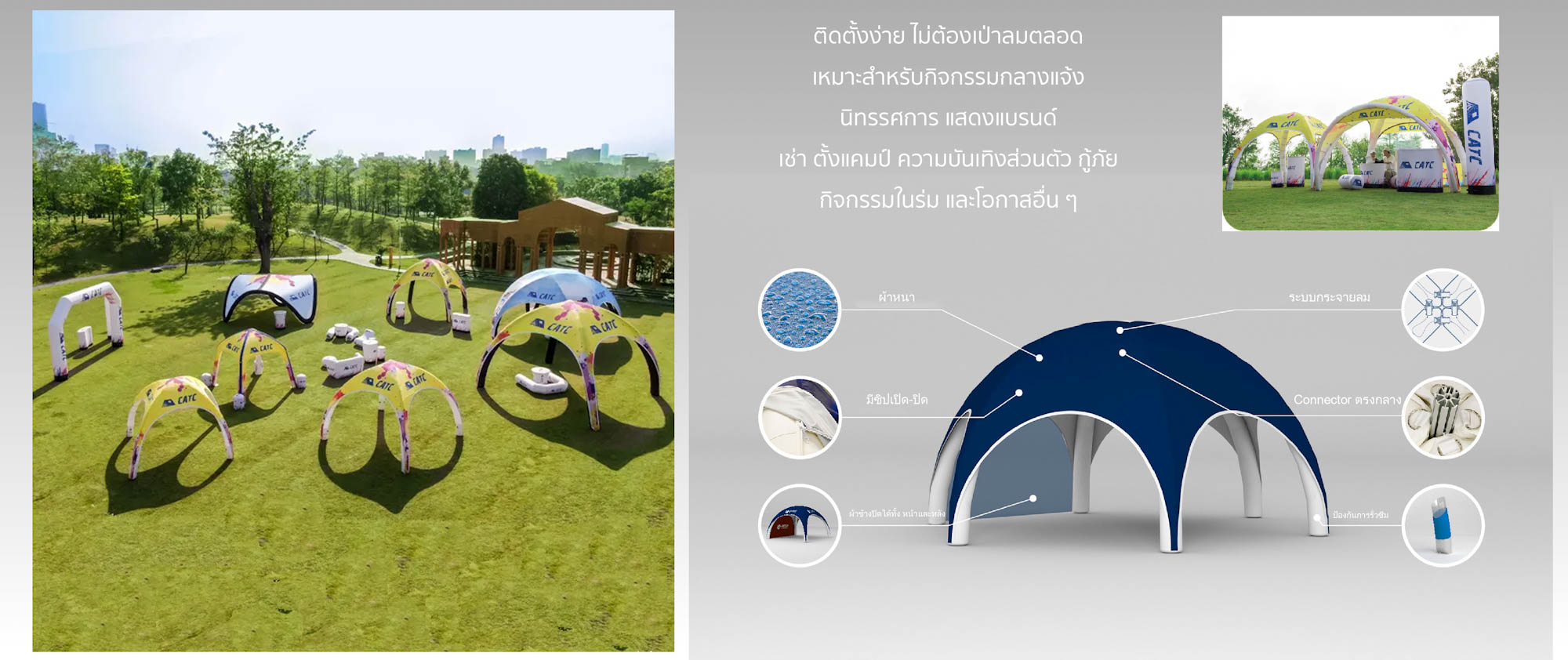 เราขอแนะนำเต็นท์ลมในรูปแบบพรีเมียมของเรา ที่ผลิตจากผ้าคุณภาพสูงสุด เต็นท์เหล่านี้ถูกออกแบบให้ทนทานต่อสภาพอากาศและนำเสนอประสบการณ์การแสดงสินค้าที่หรูหรา สิ่งที่ทำให้เราแตกต่างคือเรามีบริการพิมพ์ลายสบลิเมชันที่กำหนดเองที่ช่วยให้คุณแสดงความเป็นเอกลักษณ์ของคุณ และทีมงานของเราให้บริการออกแบบฟรีเพื่อนำวิสัยของคุณสู่การใช้งานจริง เสริมสร้างประสบการณ์การแสดงสินค้าของคุณด้วยเต็นท์ลมระดับพรีเมียมของเรา – ที่คุณภาพพบกับการปรับแต่ง.